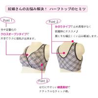 片手で楽に授乳ができるクロスオープンタイプ 肩ひもも幅広いのでくい込みにくく止め具なしのかぶりタイプ 肌にやさしい綿混素材でナチュラルなチェック柄 |