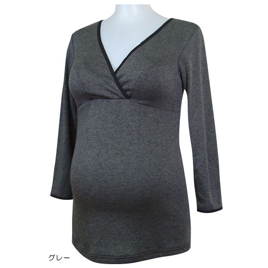 柔らか起毛素材のマタニティ 授乳インナー アンダーにはゴムが無くゆったりした 7分袖 クロスオープン 授乳 インナー 七分袖 マタニティ マタニティー ●1点のみネコポス可能●
