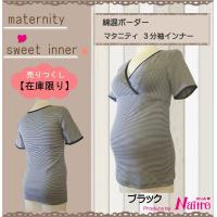 綿混素材のボーダーを使用したマタニティ3分袖インナーです。
