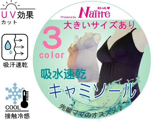 授乳 キャミソール 吸水速乾素材フィールクール M L LL 3L 4L 5L 大きいサイズ キャミ マタニティ インナー 授乳キャミ 授乳服 下着 マタニティー