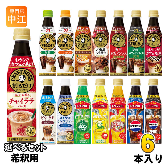 サントリー 割るだけクラフトボスカフェ おうちドリンクバー 希釈用 340ml ペットボトル シリーズより、6本 お選びいただけます。