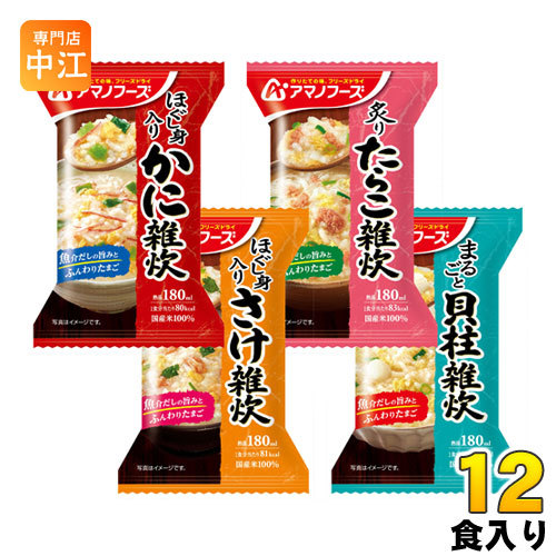 「かに」「さけ」「たらこ」「貝柱」の海鮮雑炊の4種類アソートセットです。