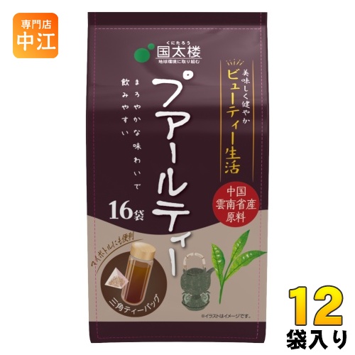 国太楼 プアールティー 三角ティーバッグ 3g×16P 12袋 (6袋入×2 まとめ買い) お茶 プーアール茶