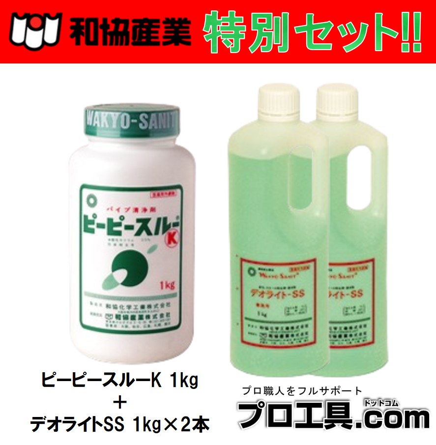 【お得なセット品!!】セット販売 和協産業 パイプ洗浄剤 ピーピースルーK 1kg×1本 + デオライトSS 1kg×2本 医薬用外劇物譲受書が必要です (送料区分:「C」)