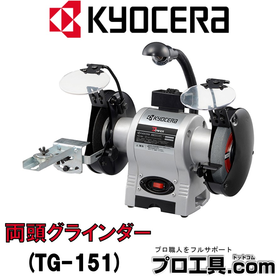 京セラ KYOCERA 両頭グラインダー TG-151 RYOBI リョービ 砥石径150mm ドレッサー・刃物研磨治具セット付 刃物の粗研ぎ 手元を照らすライト (送料区分:C)
