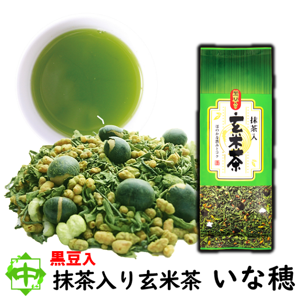 抹茶入り玄米茶 いな穂 200g 国内産 茶葉 国産黒豆入り お茶 緑茶 日本茶 茶葉 中島園