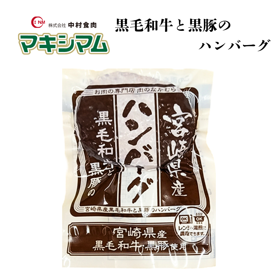 【原材料】食肉[豚肉(宮崎県産黒豚)、牛肉(宮崎県産黒毛和和牛)]、玉ねぎ(国産)、つなぎ(卵、パン粉)、食塩、香辛料、(一部に卵・小麦・豚・牛を含む)