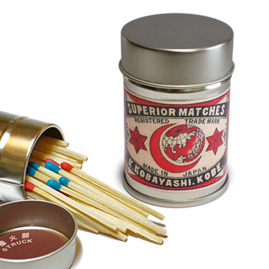レトロラベル缶マッチ・月シリーズは、防湿効果と安全性を保持できるよう缶ふたの内側にマッチを擦って火をつける側薬を張り、マッチの軸向きは火のつく頭が下になります。