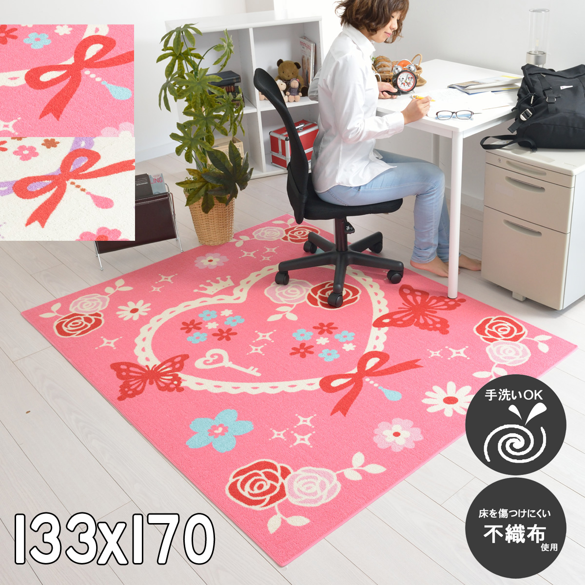 デスクカーペット ピンク カワイイ 学習机 マット 133×170 女の子 勉強部屋 プレゼント 小学生 マット 子供部屋 トゥインクル