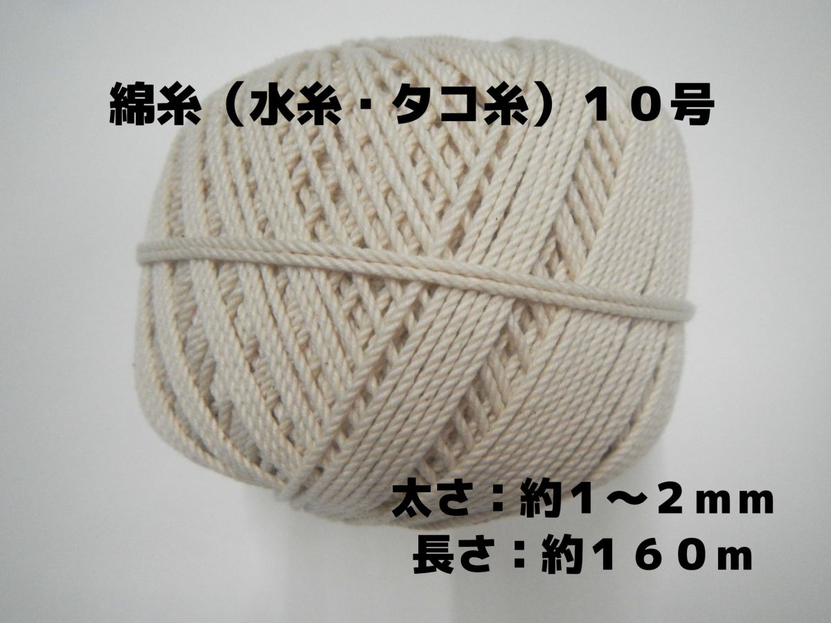 綿糸(水糸・タコ糸)の10号です。太さ:約1〜2mm 約160m巻きです。太さ、長さは、おおよその数値です。
