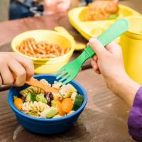 スプーンのつぼ部分は深めに作られているので食べ物がすくいやすく、フォークも安全性を考慮し先端が丸み帯びているので、お子様のファーストカトラリーにもピッタリです。