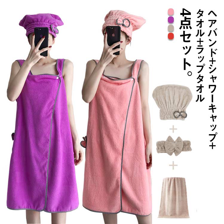 | ヘアバンド シャワーキャップ タオル ラップタオル 4点セット。 着替えやすい、動きやすい。安心のフィット感! 水遊びの必需品、体をくるっとラップ。 お風呂上がり、プールやレジャーでも大活躍! タオルの中でさっとお着替え! 体を拭いたり、冷えや日焼け対策にも役立って便利。 パイル生地で通気性に優れているから 蒸れにくくて、着ている時もベタつか ず気持ちいい。 乾きも早くてたたむとバスタオルほどだから、かさばらずタオルと一緒に収納できる。 | |