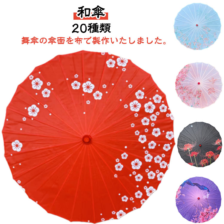 | 【和傘】 【20種類】 舞傘の傘面を布で製作いたしました。 本来の紙ではなく、布を用いることで、耐久性が向上しています。 日傘として活用される方も多く、和服のお供には欠かせないアイテムです。 洋装でのおでかけに和傘を差す方も増えているとか・・・ 布傘の活用法として撮影用アイテム、店内・室内用インテリアとしてもご利用いただけます。 | |