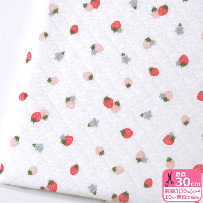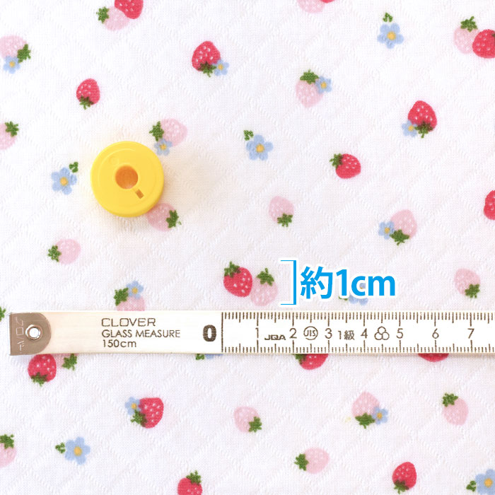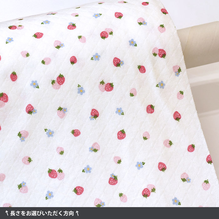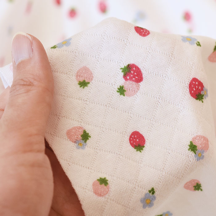 ころんと小さないちごが並んだ総柄ニット生地です。