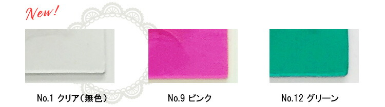 (1)クリア(透明)、(2)ミルク、(9)ピンク、(12)グリーン