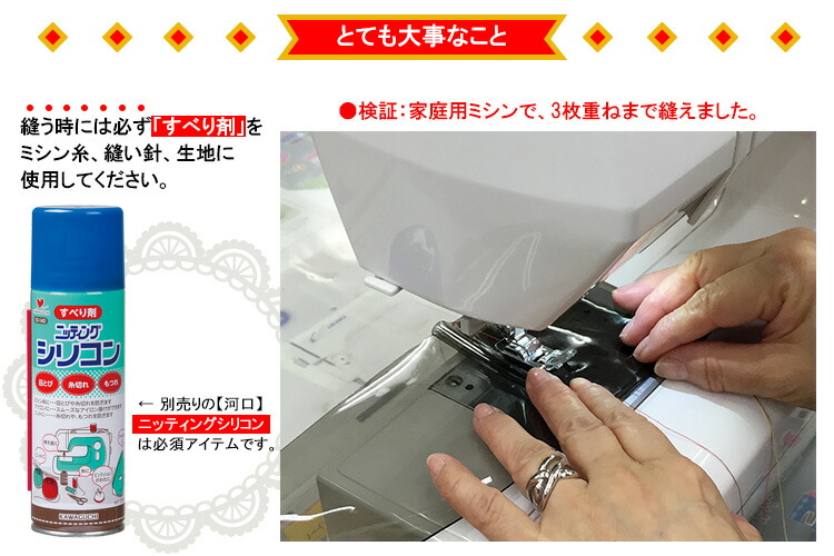 ぬい糸・縫い針・ビニール生地にすべり剤をご使用の上、