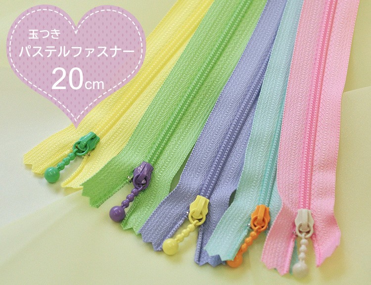 YKK 玉つきパステルファスナー20cm 5色 かわいい パステルカラー 玉付きファスナー 個性派ファスナー 手芸 洋裁材料 3CF20 4147