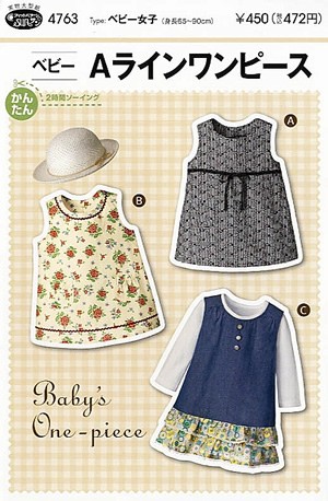 型紙 パターン 4763 ベビー Aラインワンピース 実物大型紙 身長65〜90cm用 女の子 ベビー 赤ちゃん ワンピース ソーイング 洋服 ハンドメイド 型紙 ベビー女子