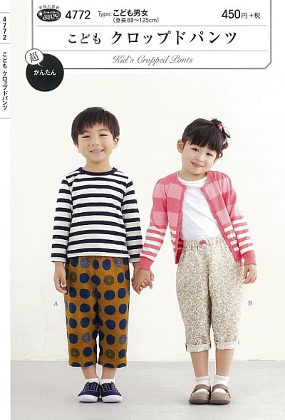 型紙 パターン 4772 こどもクロップドパンツ 実物大型紙 身長88〜125cm用 子供 キッズ 子供服 ズボン パンツ クロップドパンツ ソーイング 服 洋服 こども男女