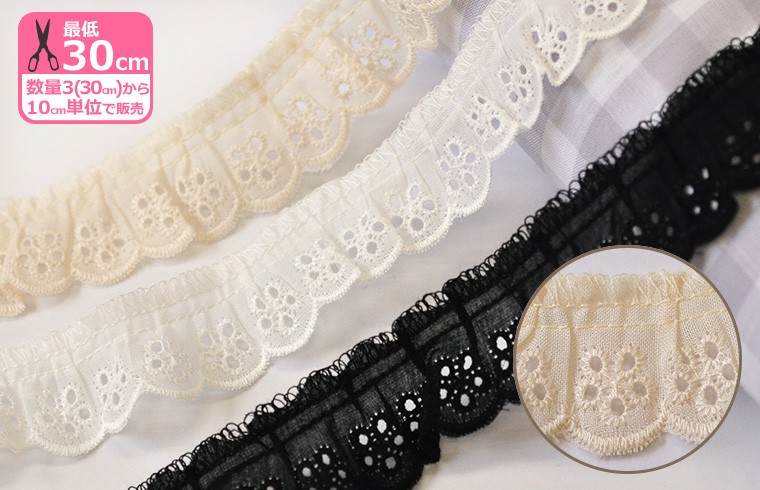 ■綿生地に刺繍を施したレースに程よいギャザーが寄っているフリルレースです。