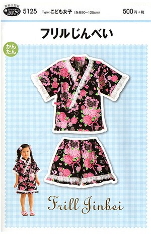 型紙 パターン 5125 フリルじんべい 実物大型紙 身長90〜125cm用 子供 キッズ 子供服 夏服 甚平 お祭り ソーイング 服 洋服 ハンドメイド こども女子