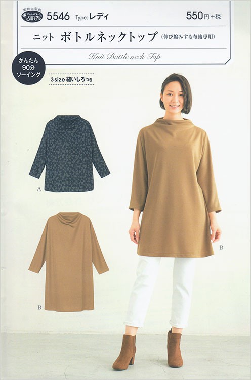 型紙 パターン 5546 ニット ボトルネックトップ 伸び縮みする布地専用 レディ