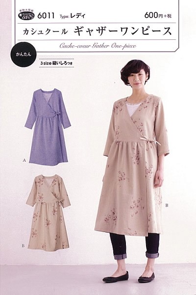 実物大型紙・パターン6011 カシュクールギャザーワンピース レディ切り取ってそのまま使える型紙と説明書