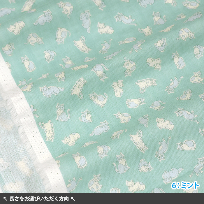 ワントーンでまとまった気ままな様子の猫柄ダブルガーゼです。