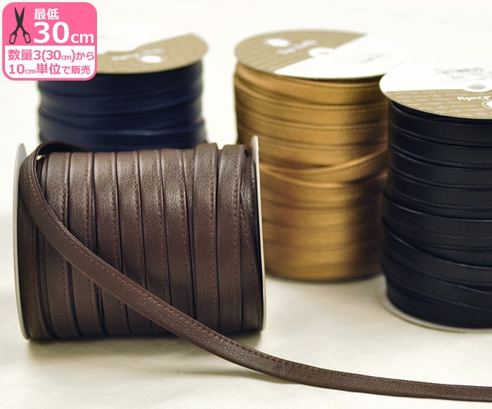 しなやかでしっとりとした質感のシンプルで使いやすい合皮のコードです。芯無しでキレイな断面、スッキリとした印象の片縫い仕様、ふんだんに合皮を使った高級感のある仕上がり。 ショルダーバッグやストラップ、ファスナー引き手など幅広くお使いいただけます。