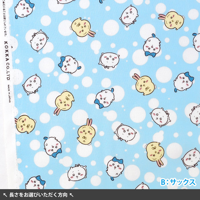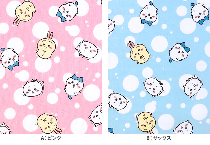 ちいかわ、ハチワレ、うさぎのドット柄プリント生地です。