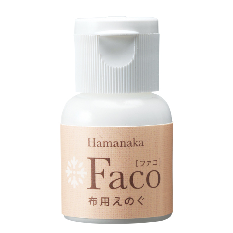 【ご注意】色の絵の具はハマナカ布用えのぐFacoの使用をおすすめします。科学繊維の種類によっては定着しづらいものがあります。シルクにご使用いただいた場合使用部分の風合いはなくなります。防水・防汚加工がされているものには定着しません。ドライクリーニングはできません。