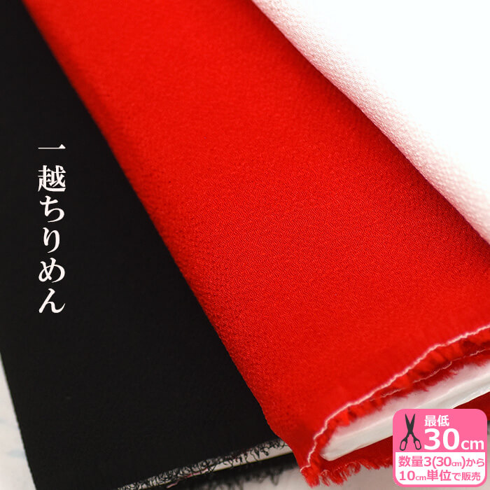 一越ちりめん 赤 黒 白 無地 生地幅36cm レーヨン100% 数量3(30cm)から10cm単位 生地 布