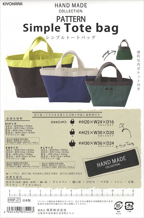 HAND MADE COLLECTION PATTERN シンプルトートバッグ バッグパターン 型紙・パターン HMP-27