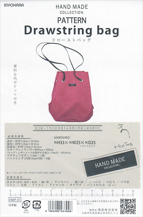 HAND MADE COLLECTION PATTERN HMP-31 ドローストバッグ バッグパターン 型紙 パターン