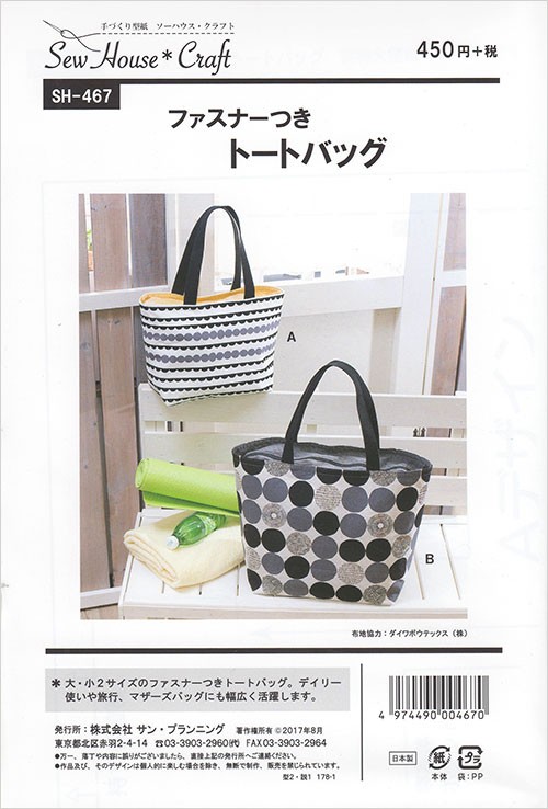 型紙 パターン SH-467 ファスナーつきトートバッグ