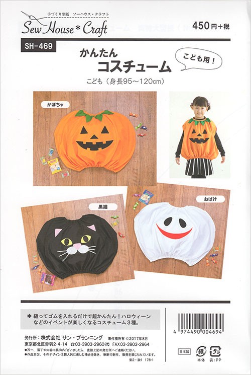 型紙 パターン SH-469 かんたんコスチューム かぼちゃ 黒猫 おばけ こども男女