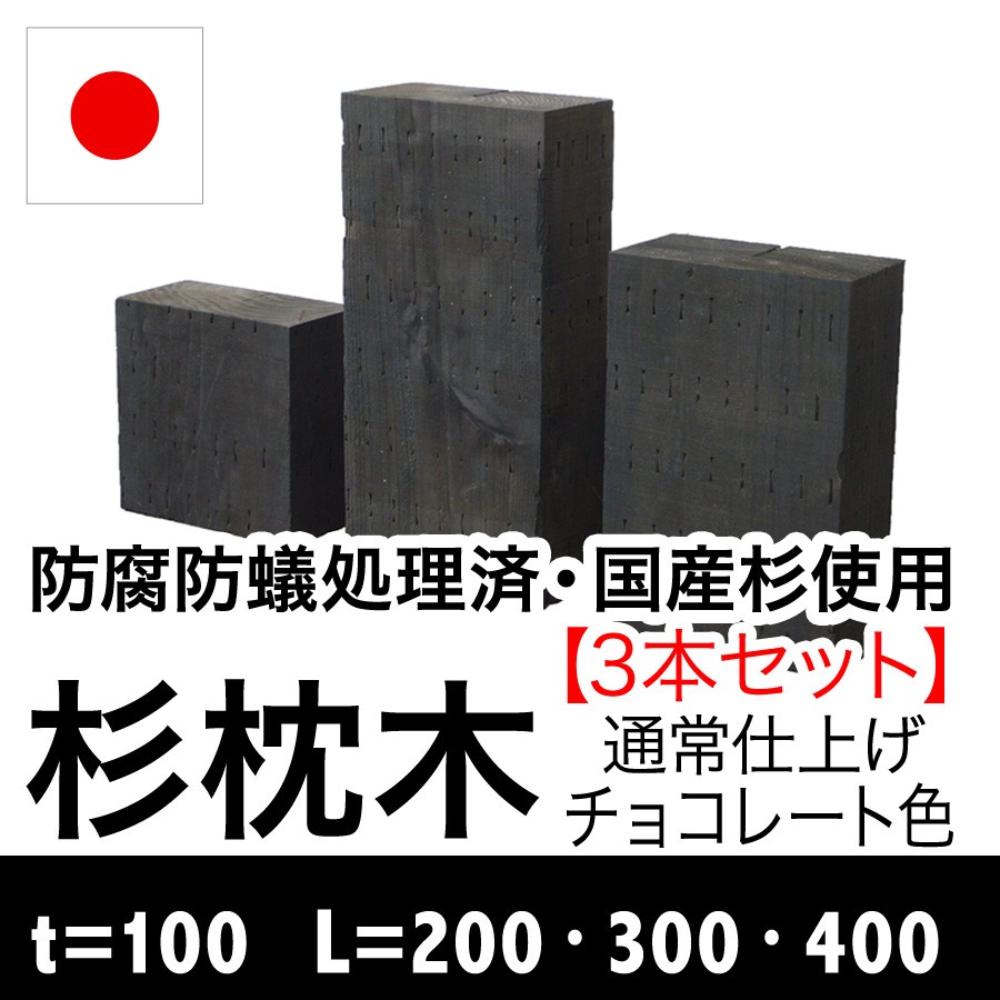 白アリ対策済☆枕木 国産杉 新品(3本セット)厚約100mm(防腐防蟻処理済)チョコレート色(枕木/セット/アプローチ/花壇/土留め/縁石/菜園/防腐/枠/ステップ)
