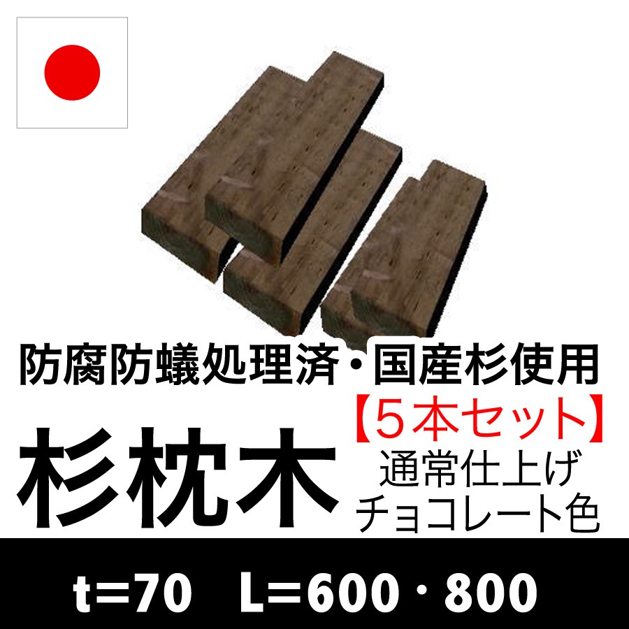 (杉枕木/5本セット)厚約70mm(防腐防蟻処理済)チョコレート色(枕木/セット/アプローチ/花壇/土留め/縁石/菜園/防腐/国産/枠/ステップ)