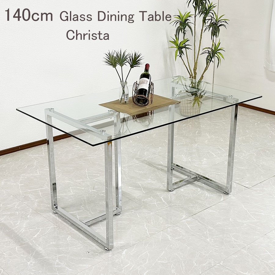 【新品】ダイニングテーブル 幅140cm ガラステーブル ガラス天板 クリスタル テーブル アイアン脚 食卓テーブル クリスタ ※送料無料※