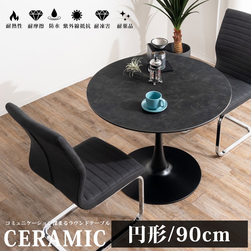 セラミック ダイニングテーブル 90cm 丸テーブル ダークグレー ポラリス おしゃれ テーブル ラウンド 石目模様 円形