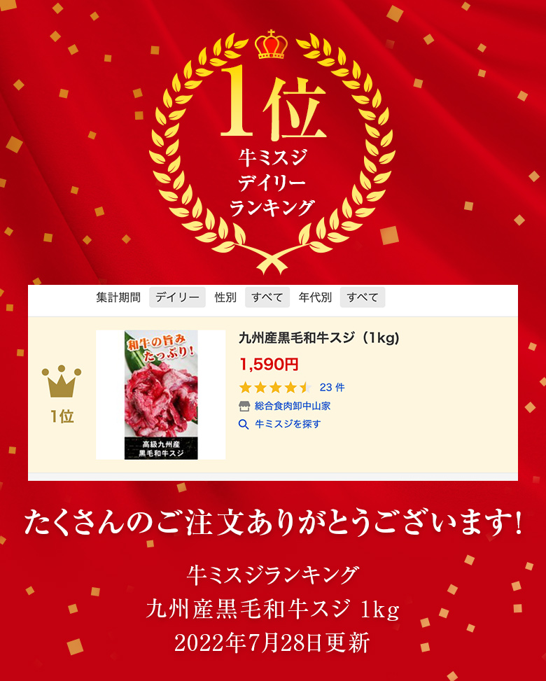 九州産黒毛和牛スジ 1kg 肉 お肉 牛肉 和牛 九州産 国産 スジ すじ 煮込み料理 カレー うどん