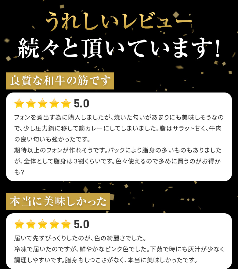 九州産黒毛和牛の引き筋。カレーや、煮込み料理、うどん等!和牛の旨みが出ます!!