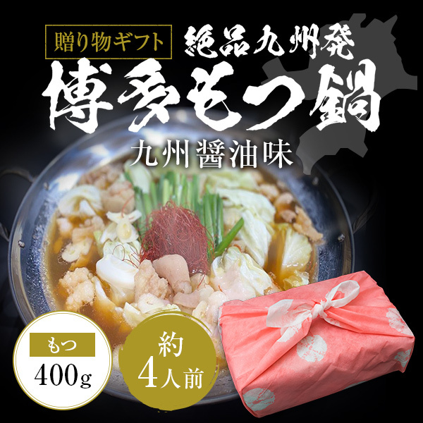 ギフト お中元 御中元 絶品九州発博多もつ鍋 九州醤油味 約4人前 もつ 400g 100g×4 内祝い 贈物 鍋セット 御歳暮 お歳暮 風呂敷 化粧箱