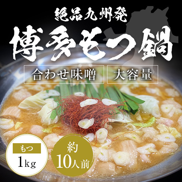 絶品九州発博多もつ鍋 合わせ味噌 約10人前 もつ 1kg 100g×10 濃縮合わせ味噌スープ 120ml 特製オリジナルちゃんぽん麺6人前 牛もつ 鍋セット 牛もつ
