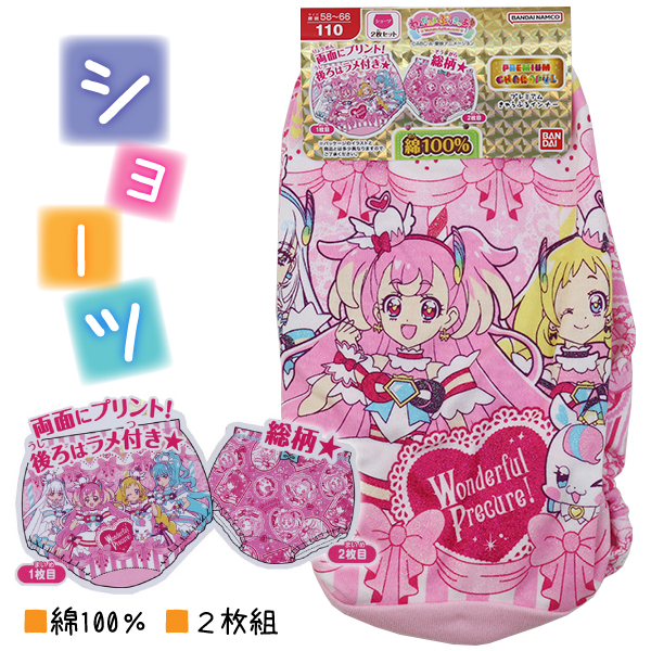 綿100% 2枚組 わんだふるぷりきゅあ! プリキュア 女児 ショーツ パンツ 下着 100-130cm 【送料無料(税込1000円のお買上げが条件)】