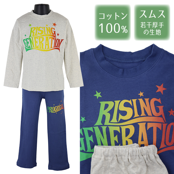 【訳アリ:汚れ・パッケージ不良等】綿100% chuchum グラデーションロゴ 子供 男児 スムス 長袖 パジャマ 上下セット 100-130cm 【送料無料】