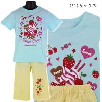 【訳アリ:在庫処分・汚れ 等】 綿100% いちごパフェ×ワンポイント 子供 女児 天竺 半袖 パジャマ 上下セット 100-130cm【送料無料(1000円の購入条件)】