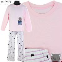 【訳アリ:汚れ・パッケージ不良等】綿100% PAL HOUSE ねこフェイクポケット×黒ねこボーダー 100-130cm 子供 女児 天竺 長袖 パジャマ 上下セット【送料無料】