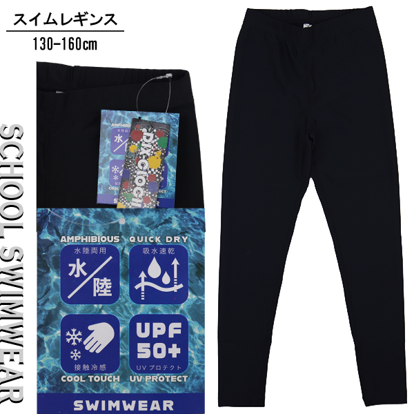 スイムレギンス 130-160cm 黒無地 子供 キッズ 水着 紫外線対策 水陸両用 吸水速乾 接触冷感 UVプロテクト DIX-CLOCHE 入園 入学 通園 通学 水泳 【送料無料】