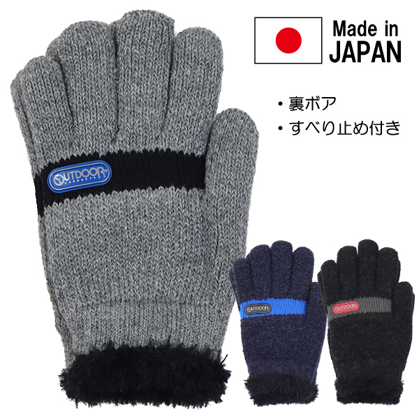 日本製 OUTDOOR アウトドア ニット手袋 すべり止め付き 裏ボア 子供 キッズ 手袋 てぶくろ ブランド 入園 入学 通園 通学【送料無料】